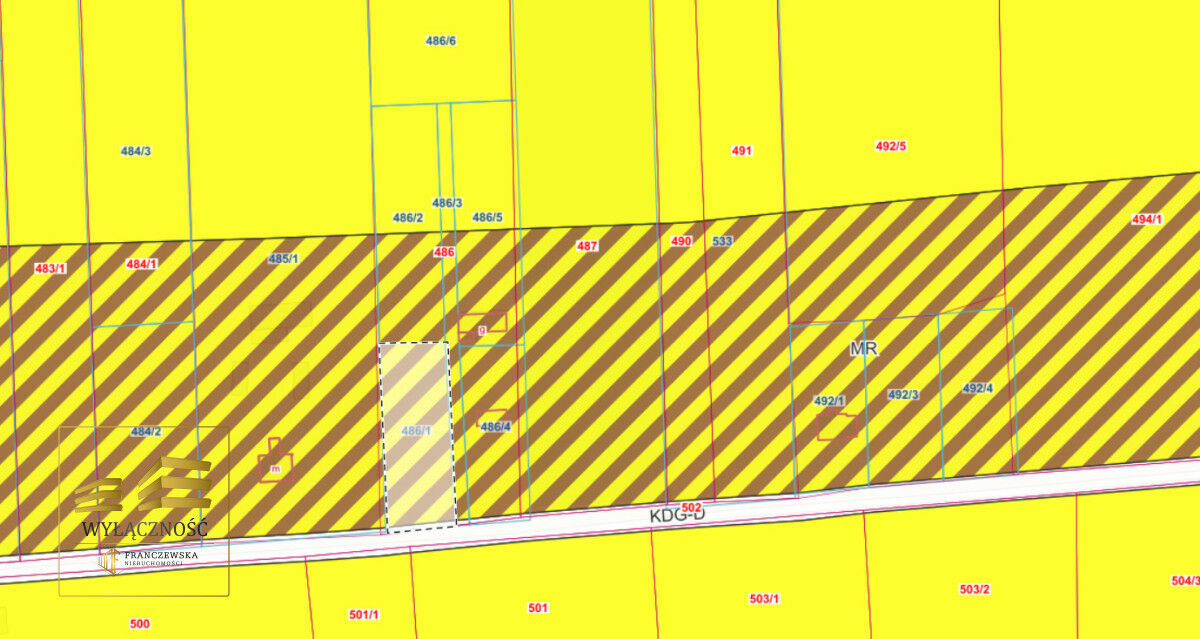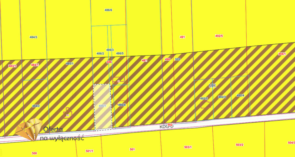 W ofercie posiadamy również działkę nr 486/1 w pierwszej linii zabudowy o pow. ok. 1627m2.
